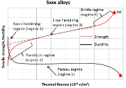 Aluminum alloys containing magnesium and silicon are frequently used as structural materials in nuclear Research Reactors (RR), such as the high-flux reactor in Petten (see Fig. 1a). Over the lifetime of the reactor, these alloys absorb neutrons of various energies. Fast neutrons (high energy neutrons) cause dislocation loops and voids to form whereas thermal neutrons cause the transmutation of aluminum into silicon. The silicon then draws magnesium out of solid solution and forms Mg2Si precipitates as well as Si-rich precipitates, which are generally found on the grain boundaries. Crystallographic slip is then hindered by these inclusions, and the grain boundaries are weakened. This process is believed to change the failure mechanism from ductile to brittle (Fig. 1b).